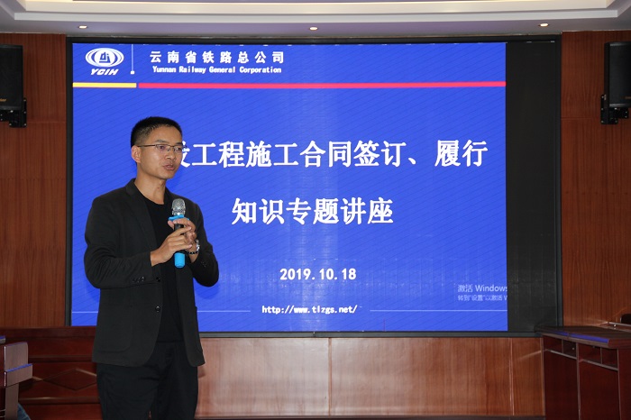 • 為進一步加強總公司系統(tǒng)內(nèi)員工就建設工程合同的簽訂以及履行過程的管控,努力做到以事前防范、事中控制為主,事后處理為輔的目標任務,總公司于2019年10月18日在公司四樓大會議室開展建設工程合同簽訂、履行知識講座??偣?span style="font-family: 宋體, SimSun; font-size: 20px; text-indent: 32px;">在家領導班子成員,生產(chǎn)經(jīng)營、經(jīng)濟管控、印章管理部門相關崗位工作人員,下屬子公司和直屬項目部生產(chǎn)經(jīng)營、經(jīng)濟管理、印章管理的分管領導以及相關崗位工作人員參加培訓。本次講座由公司法律顧問云南弘瑞律師事務所雷榮生主任律師主講。